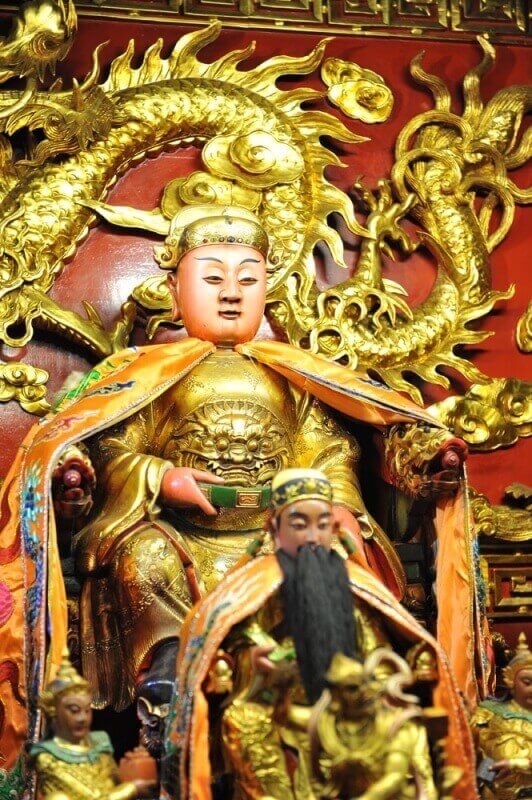 大媽:指的是「鎮殿媽祖」,是宮內最大型的一尊神像,身穿龍袍,肩披霞帔,腳穿麟靴。與二媽終年坐在殿中供信徒祈求膜拜。身旁有書童、印童服侍。