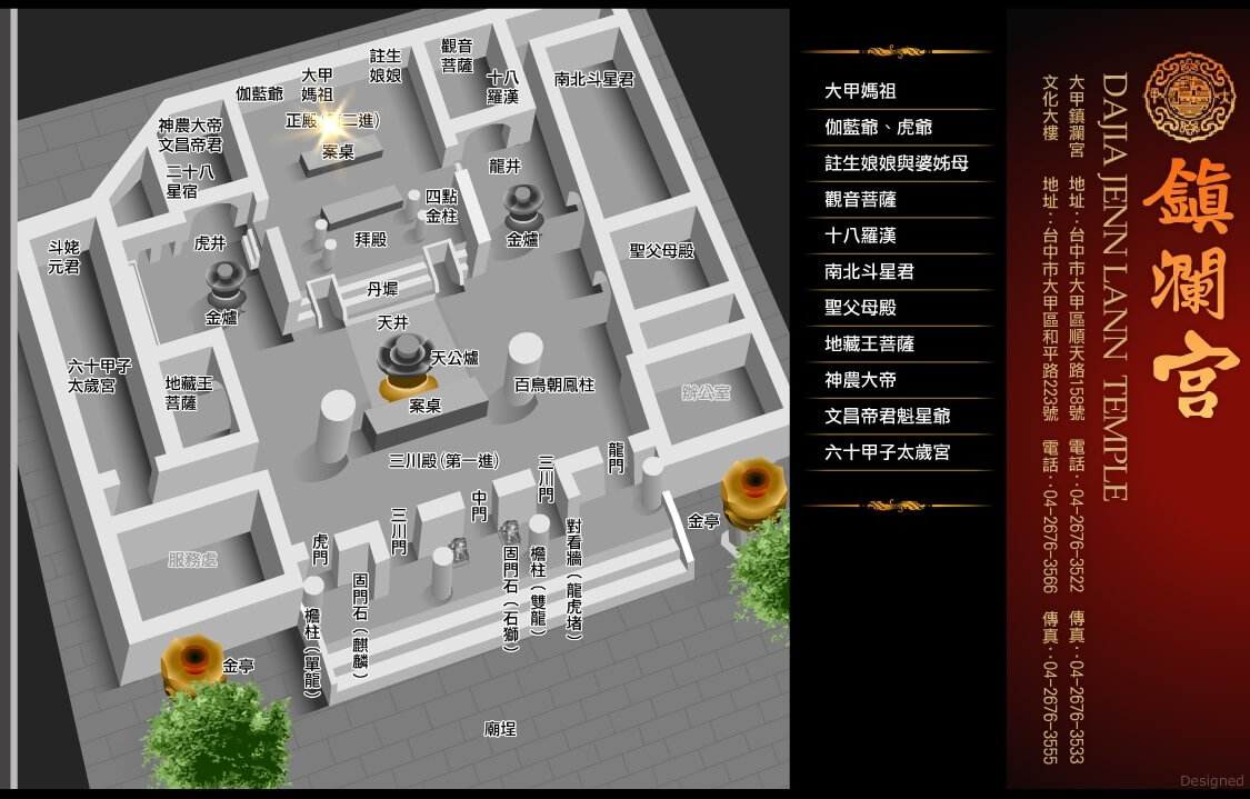下圖為大甲媽祖網站上的廟殿位置圖。