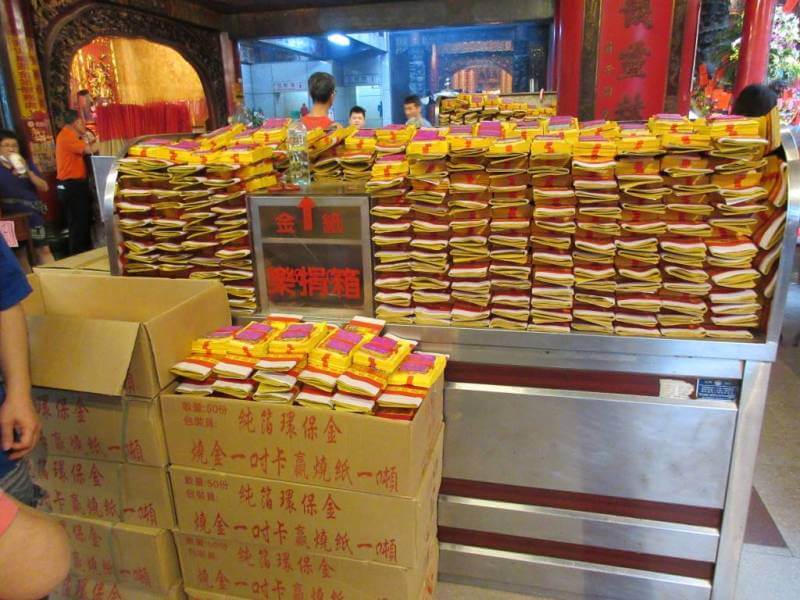這裡只提供一般拜拜用的金紙,若您特別要參拜文昌帝君求考運,文昌帝君殿有專用的文昌金紙可供祭拜。