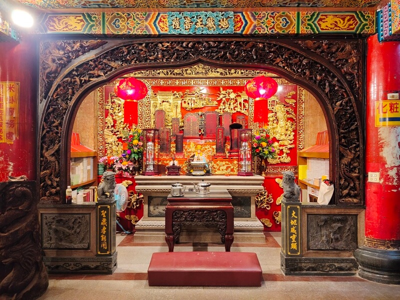 從入口走下樓梯後您即可看到懿德殿的樟木媽祖。