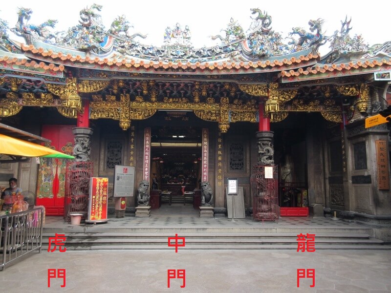 中門為「神道」,也就是神明進出的通道,唯有在迎神、送神和接待國家元首時才會開啟,所以一般廟宇通常以門欄把中門封鎖。