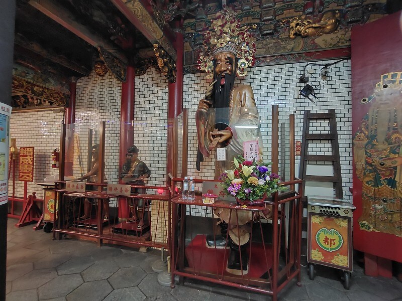 原來這是當初建廟時用泥塑而成的鎮殿神像,是無法移動的。一年之中也只有在農曆7/12都城隍爺的軟身神像出神龕準備出巡,一直到農曆7/20都城隍爺入殿為止,共8天的時間,信眾才可以看得到這尊鎮殿神像。