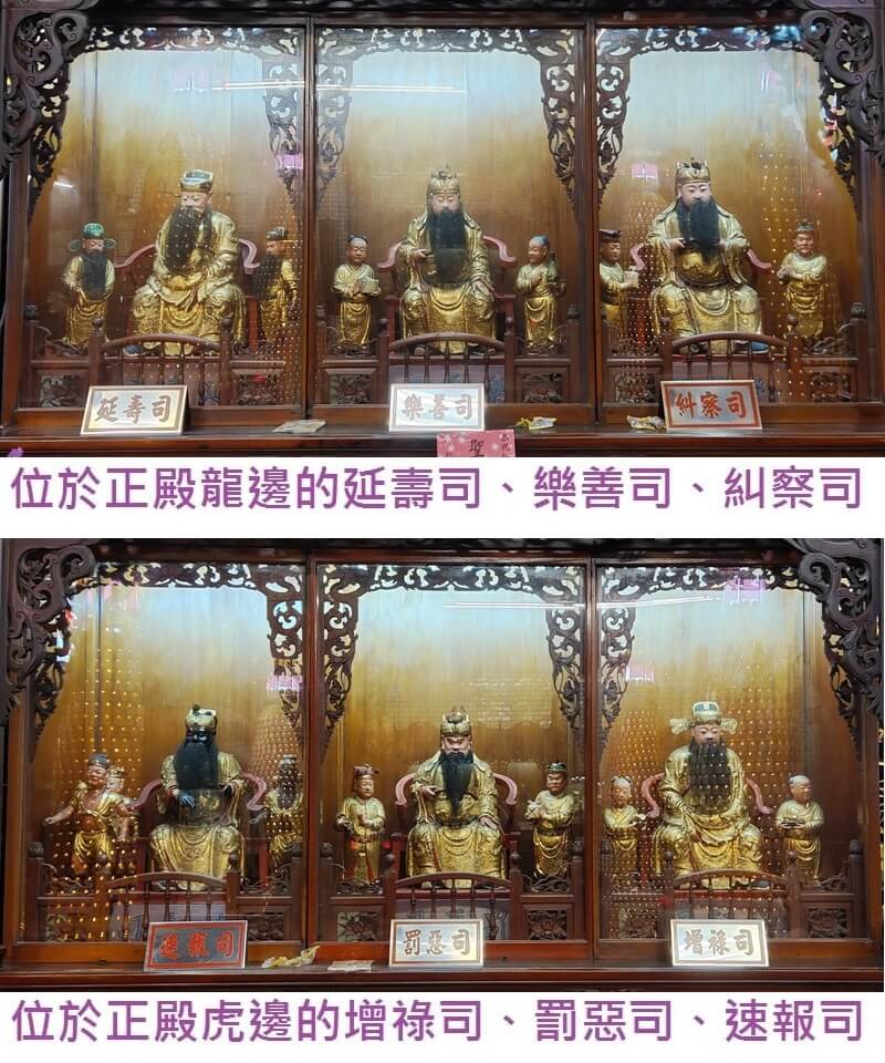 3. 繞拜諸神順序 - 接著進門後從右向外先拜陰陽司公,再拜六司公、土地公(請勿遺漏土地公桌下之虎爺。)、山財神,六將爺。