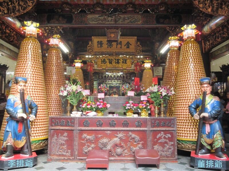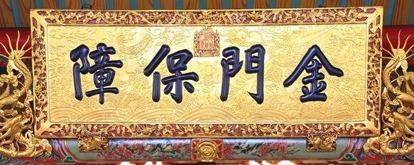 殿上方有光緒帝御筆的「金門保障」匾額,我們可以發現「金」與「障」字寫法與一般的不同,代表著皇帝所寫的字要出頭的意思。