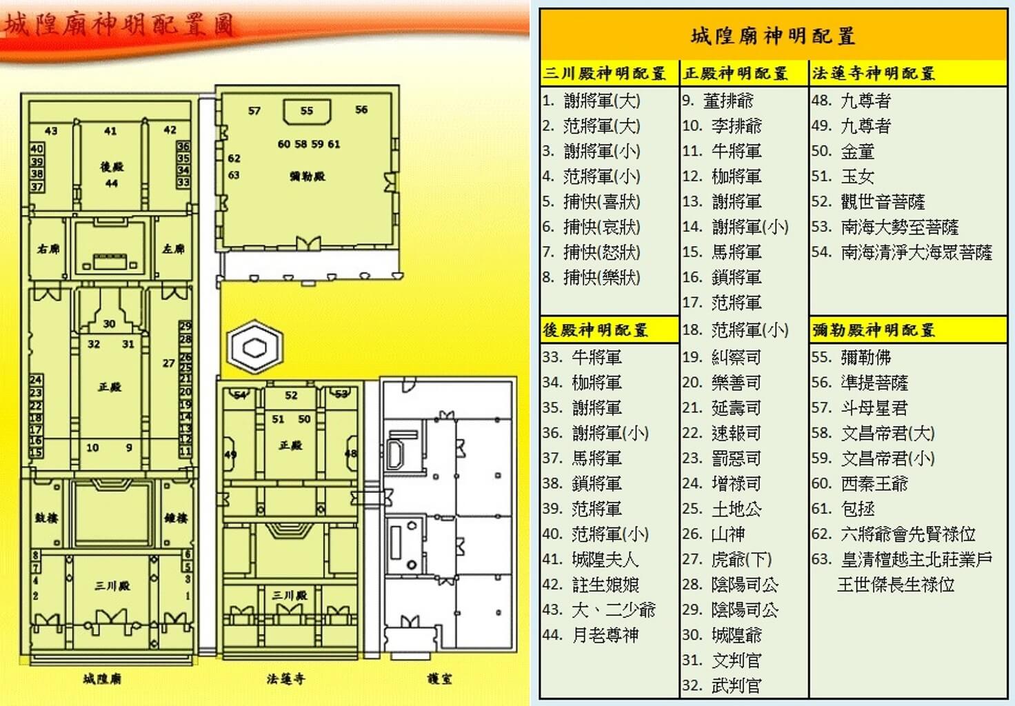 又新竹都城隍廟內的神明眾多,為避免信眾搞不清楚,小弟將官網上的神明配置圖整理如下圖供大家參考。