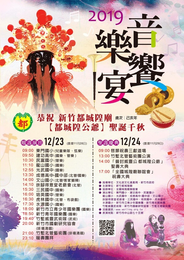 下圖為2019年【都城隍公爺】聖誕海報,分兩日進行,十一月二十八日進行「暖壽演出」,十一月二十九日則進行「聖壽慶典」活動。