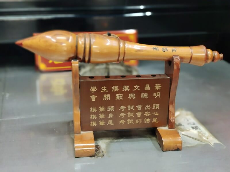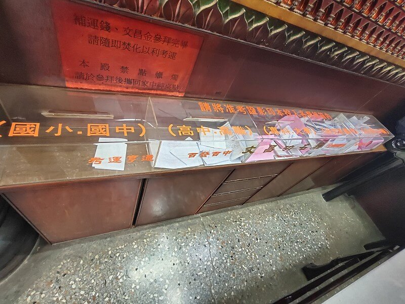由於文昌帝君主掌文運,考季時各考生都會準備准考証、蔥、蒜、肉粽、筆等具有吉祥意義的供品,期能一試就中,光耀門楣。
