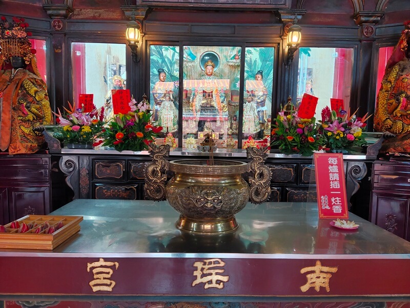 從下圖我們可以發現南瑤宮的香爐居然有22爐之多,這是否代表了我們要參拜的神明特別的多呢? 其實不然,近來因為響應環保的因素,許多宮廟都採用一殿一爐,一爐一香的方式來讓信眾參拜;而南瑤宮則遵循傳統的方式,除主龕設香爐之外,左、右兩龕也分別設置了香爐,故一殿共有三爐,也因此導致香爐的數量是其他宮廟的三倍之多,但其實要參拜的神明數量是差不多的。