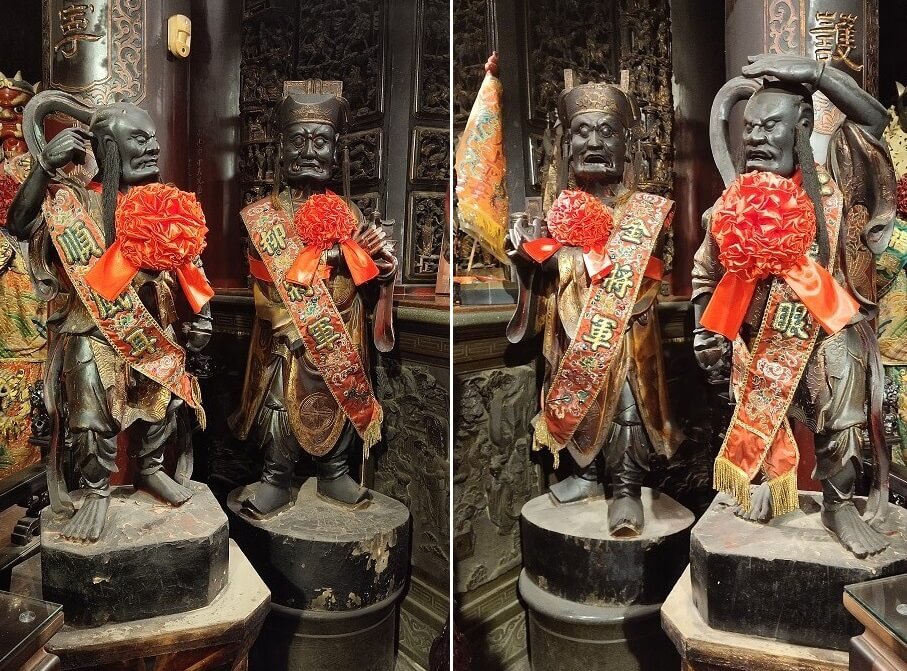 傳統寺廟的規範都是「左尊右卑」,左右的定義是以神明的座向為準。而一般廟宇皆採用三川門的設計(中門、龍門、虎門),也就是說信眾如果面對廟門的話,信眾右手邊即是廟的左側、龍邊(廟方的左、右是以神明的座向為準);信眾左手邊即是廟的右側、虎邊。