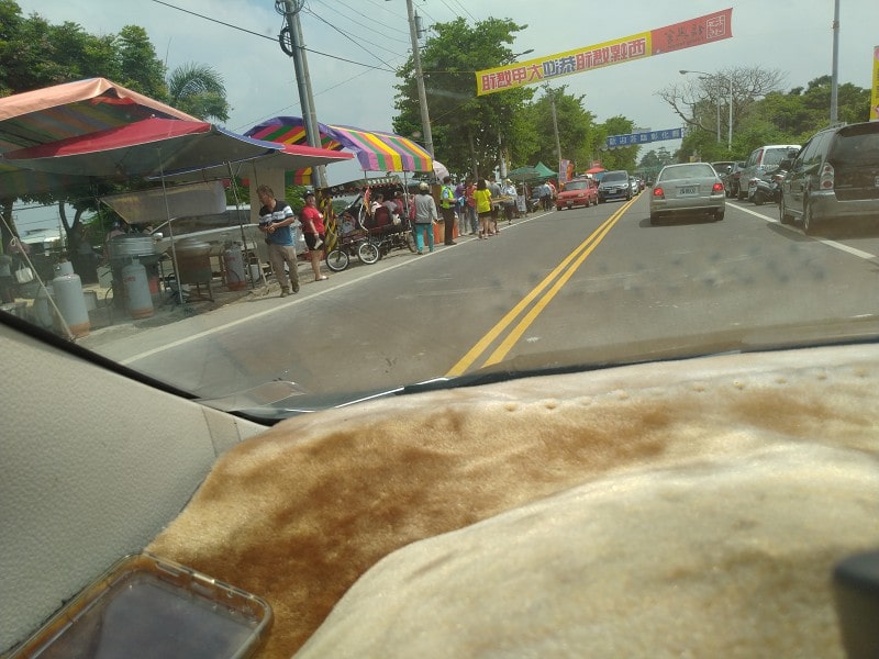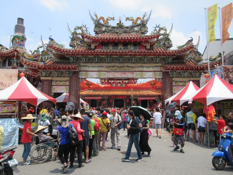 我們可以看到大甲媽祖遶境駐駕當天,廟前充滿了來祭拜的信徒。