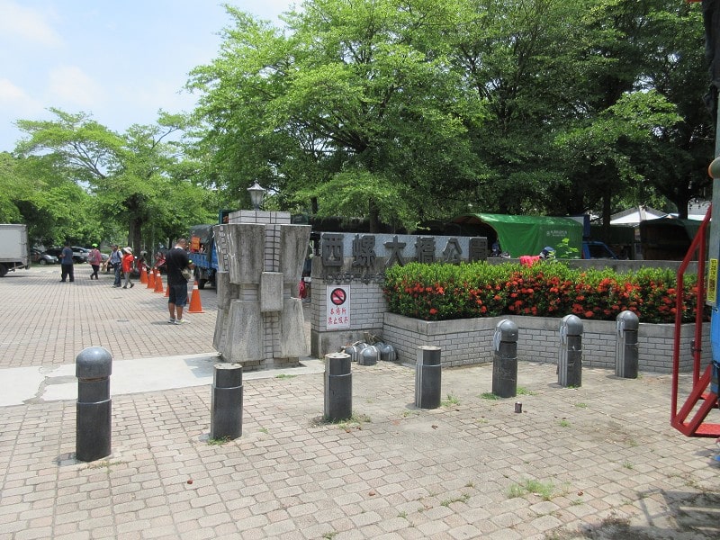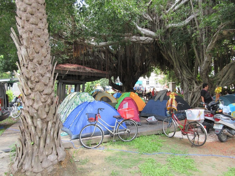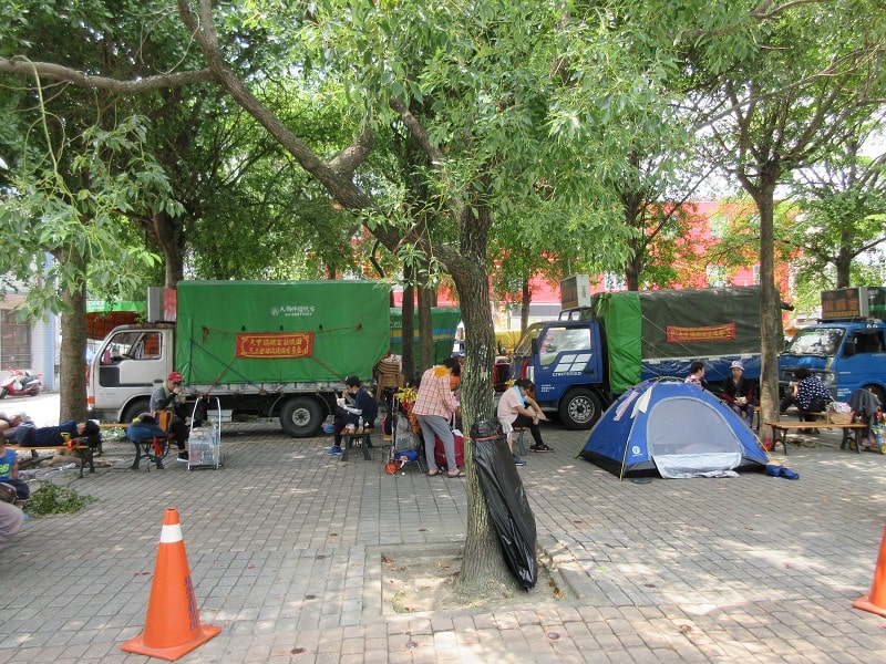 在公園的樹蔭下我們可以看到滿滿的帳篷,這些都是來參加遶境的工作人員以及信眾要過夜休息用的(如下圖)。