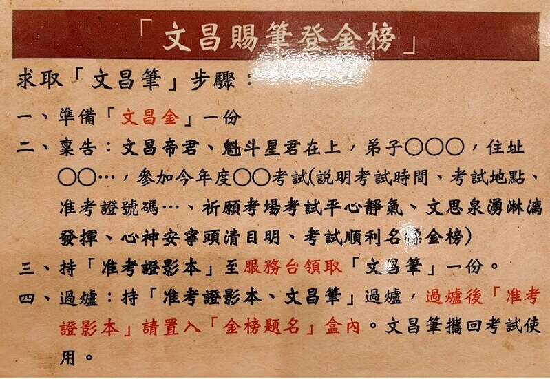 PS:信眾若是要跟神明請茭、求籤、求平安符、求發財金、求文昌筆,或是向月老公求取紅線等,請依序先參拜完廟(寺)內神明,切勿直接擲筊或是抽籤詢問神意等,這是不禮貌的。