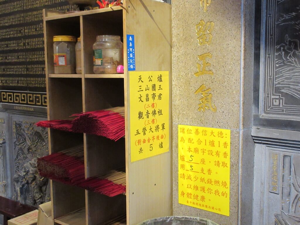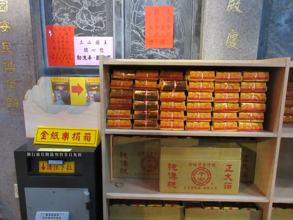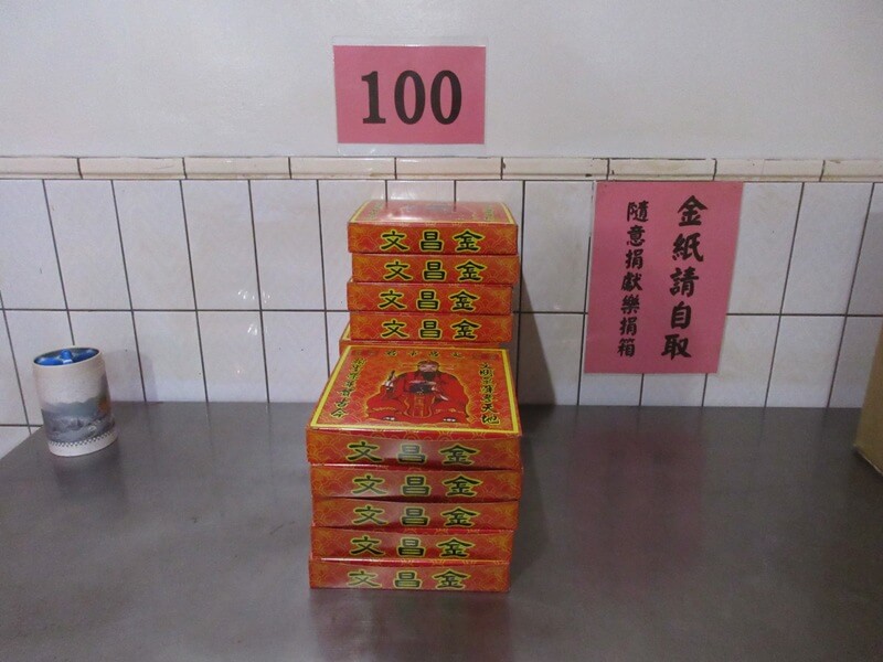 這裡只提供一般拜拜用的金紙,若您特別要參拜文昌帝君求考運,二樓的文昌帝君殿有專用的文昌金紙可供祭拜。而三樓的觀音佛祖殿也有專用的觀音金紙提供給我們來祭拜觀音佛祖。