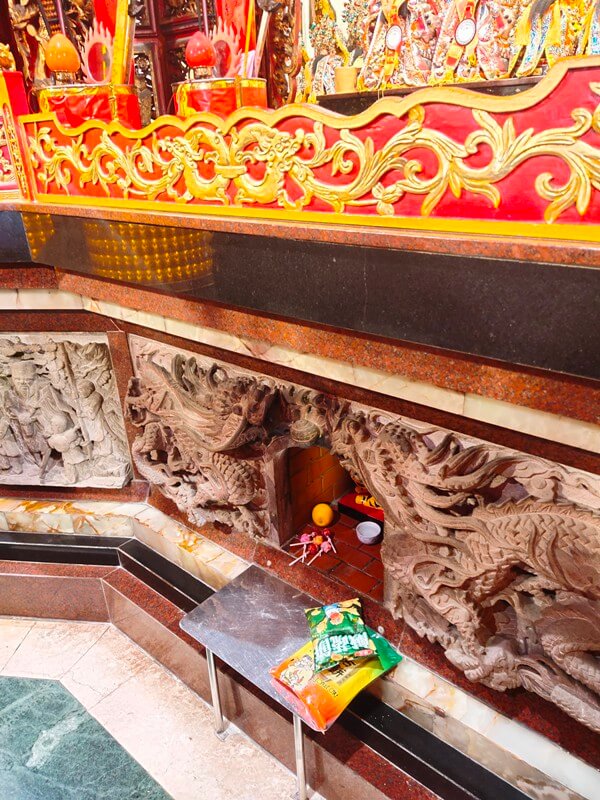 中門為「神道」,也就是神明進出的通道,唯有在迎神、送神和接待國家元首時才會開啟,所以一般廟宇通常以門欄把中門封鎖。